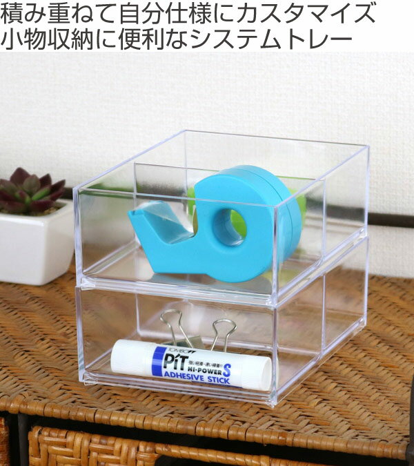 商品区分小物収納ケースカテゴリから探す小物ケース クリア S 深型 2分割 卓上収納 小物入れ自由なスタッキングで自分だけの収納空間SサイズとLサイズ、深型と浅型、フタになる平型トレーも組み合わせて自分だけの小物収納ができます。