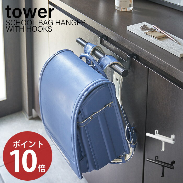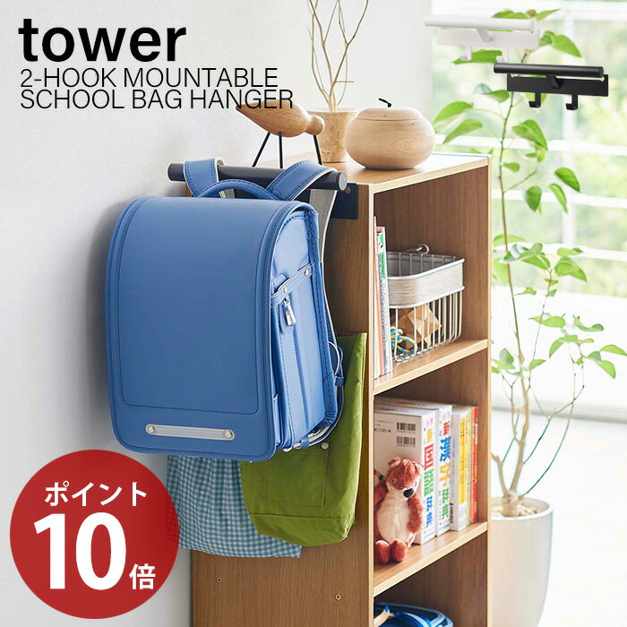 カラーボックス横 ランドセル&リュック ハンガー tower タワー おしゃれ ランドセルラック 壁掛け 省スペース リュックサック 通園バッグ 新生活 フック キッズ 子ども ホワイト ブラック タワーシリーズ 山崎実業 5316 5317