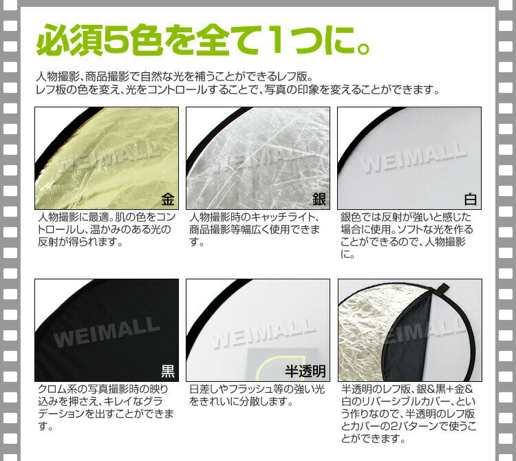 ▼検索キーワード 撮影用 レフ板 折りたたみ 丸型 収納ポーチ付き 丸レフ板 56cm 22インチ 5色 リバーシブルレフ板 写真撮影 撮影用品 照明 撮影キット 撮影機材 コンパクト収納 人気 おすすめ 送料無料 WEIMALL